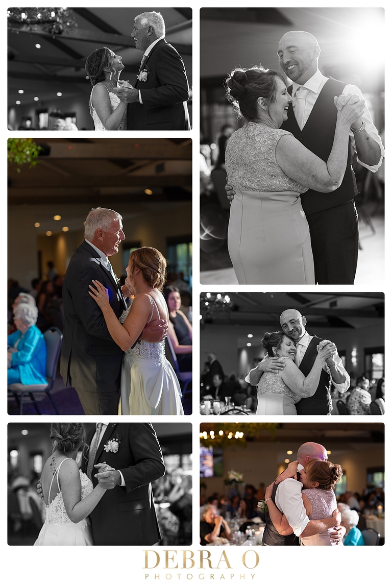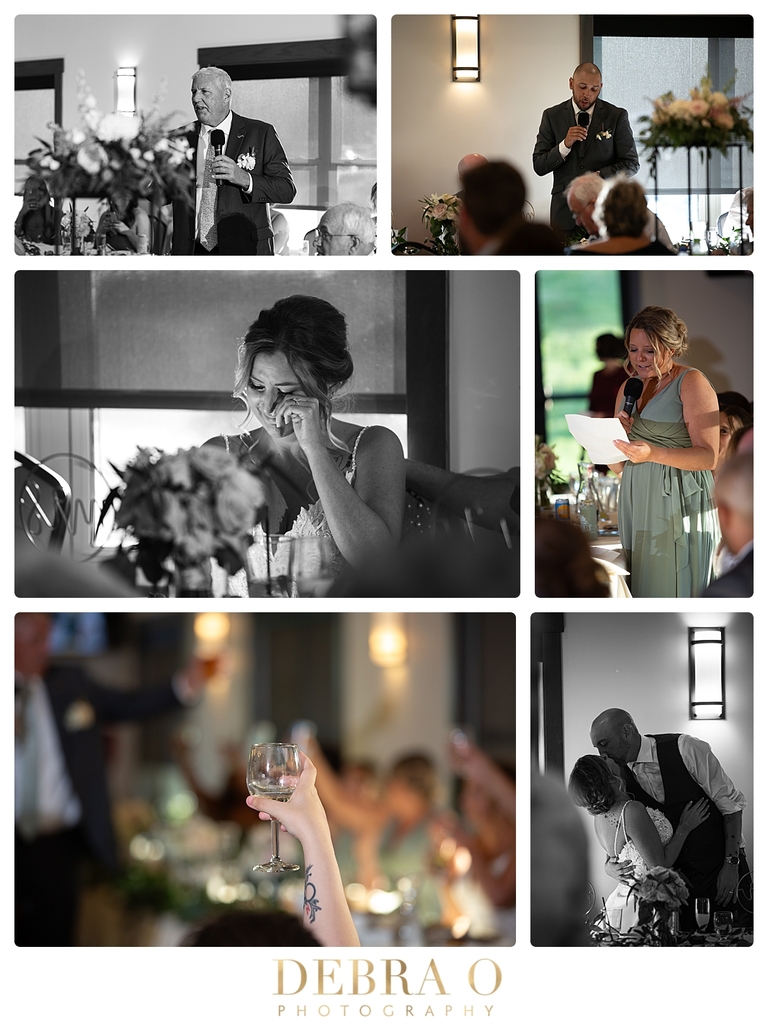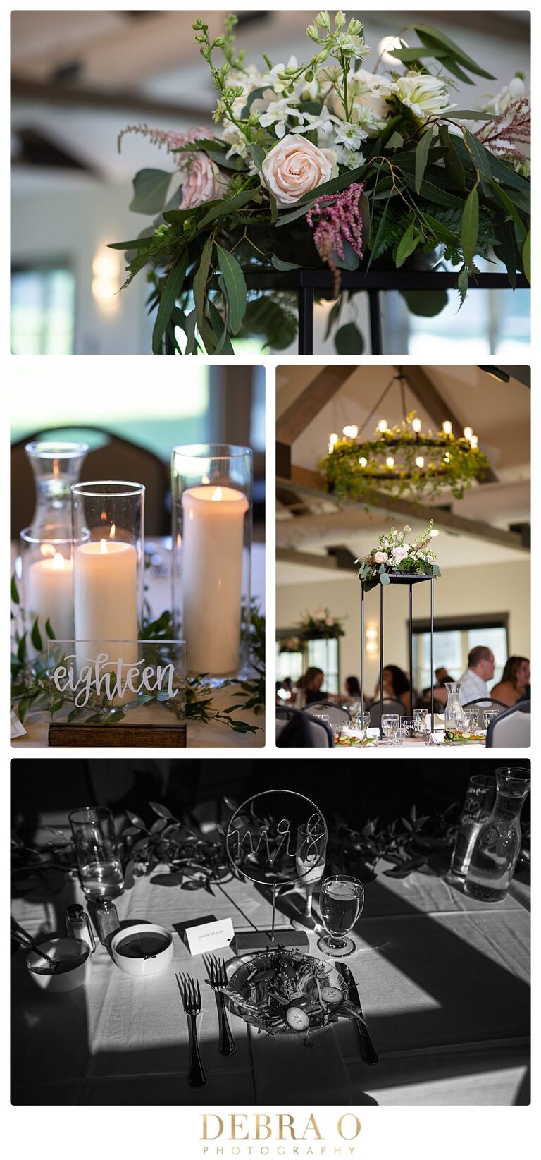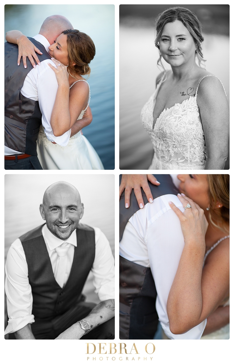 Their ceremony was perched on a hill overlooking the stunning natural scenery, manicured greens, and a picturesque waterfall. Not only did the venue provide a serene and elegant backdrop for photographs, it also provided a memorable experience for their guests. Following the ceremony, the wedding party hopped on the Hudson Trolley and headed to beautiful downtown Hudson for a celebratory drink and a few photos on the pier. Meanwhile, guests mingled back at the reception and enjoyed cocktails and light appetizers.