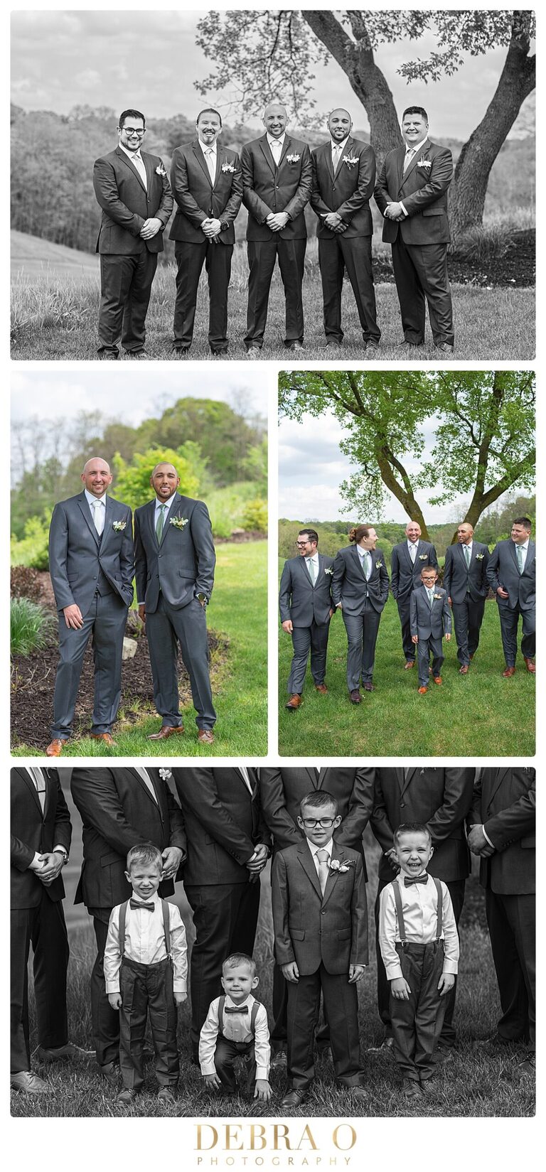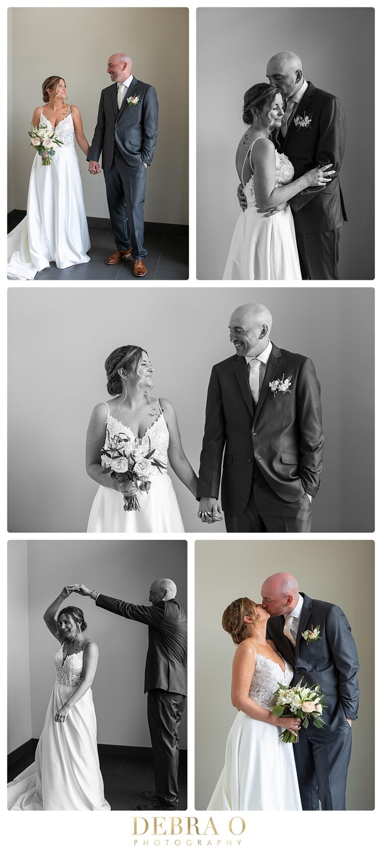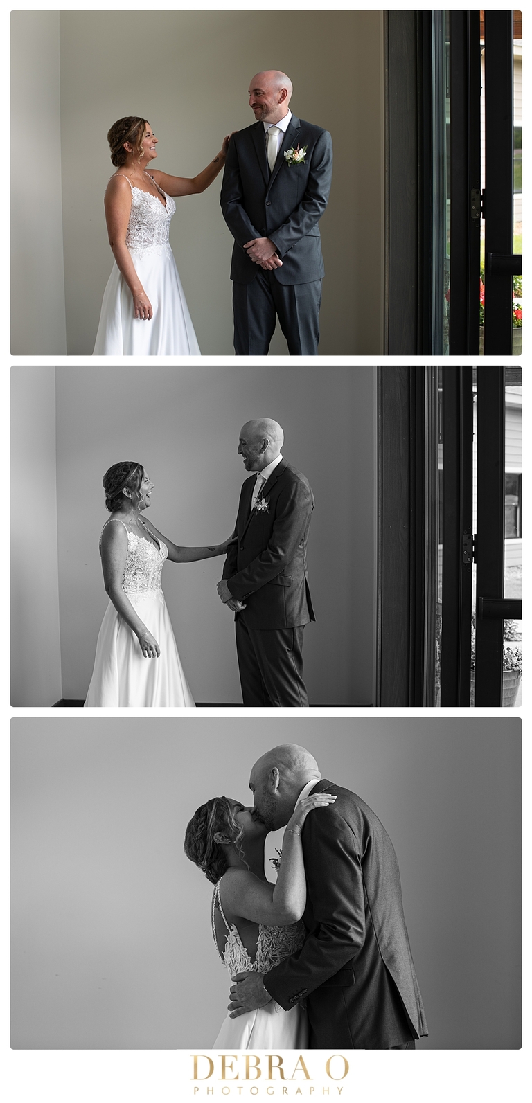 Their ceremony was perched on a hill overlooking the stunning natural scenery, manicured greens, and a picturesque waterfall. Not only did the venue provide a serene and elegant backdrop for photographs, it also provided a memorable experience for their guests. Following the ceremony, the wedding party hopped on the Hudson Trolley and headed to beautiful downtown Hudson for a celebratory drink and a few photos on the pier. Meanwhile, guests mingled back at the reception and enjoyed cocktails and light appetizers.