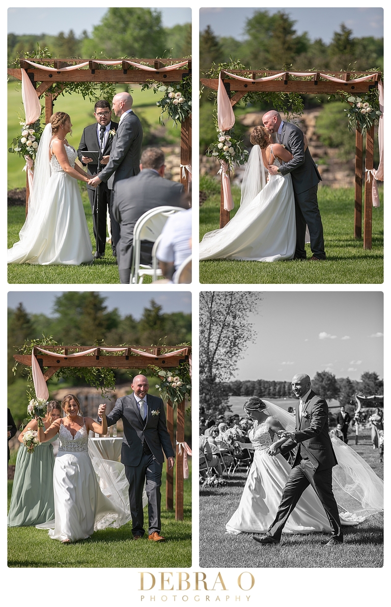 Ceremony and Reception Site: White Eagle Golf Course | Wedding Transportation: Hudson Trolley | Florist: Jenny Behrendt with Sunshine Boutique Floral | Cakes: Nothing Bundt Cakes | DJ: Amos and Jenny Smith