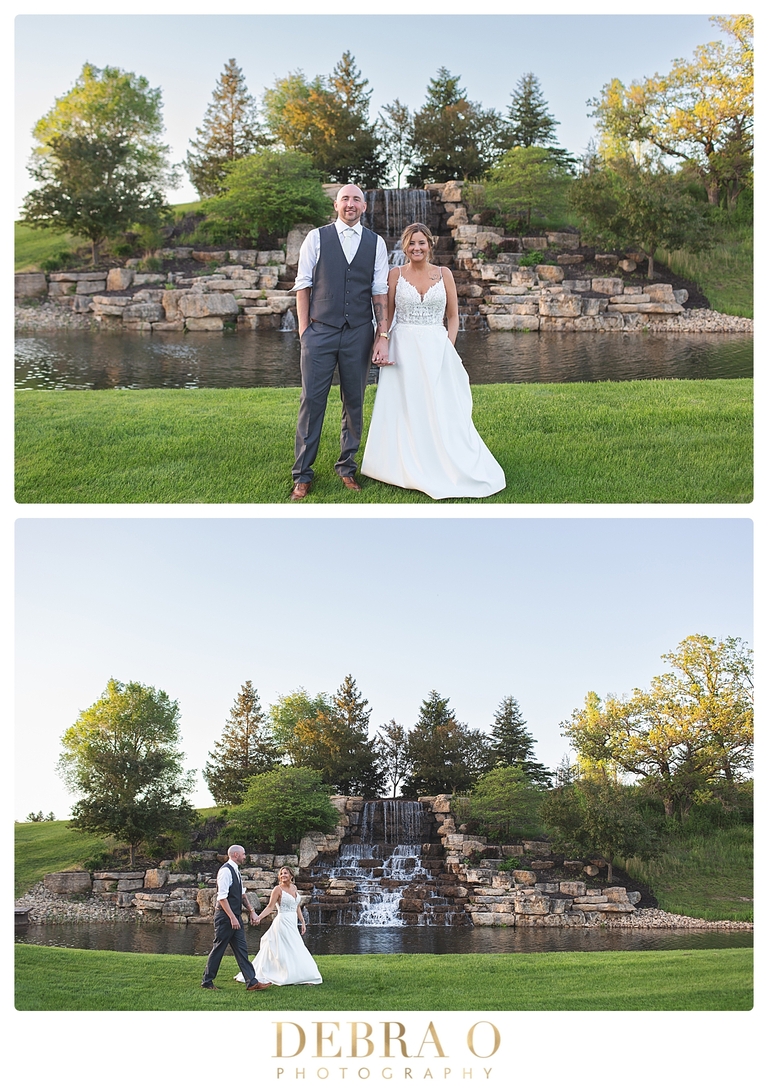 After dinner and first dances, Amber and Joey stepped outside for some gorgeous photos on the green and near the waterfall. Before heading back in for more dancing, the wedding party greeted Amber and Joey with large sparklers, making it the perfect ending to a perfect day.