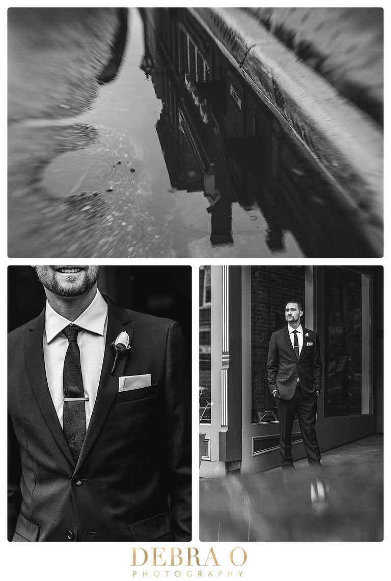 Erin and Eli’s April wedding came with the expected April rainy weather. The end of the world? No way. Rain can create a romantic and cozy atmosphere, adding unique charm to the wedding day. The rain provided different opportunities for stunning and memorable photos with reflections and dramatic lighting.