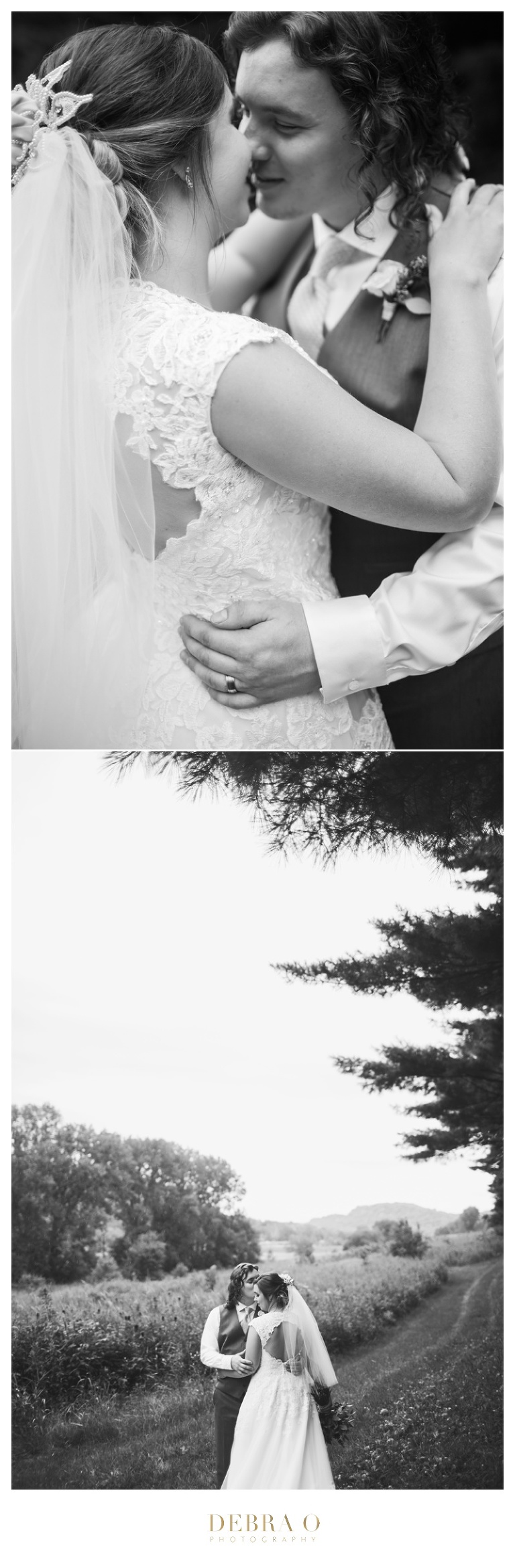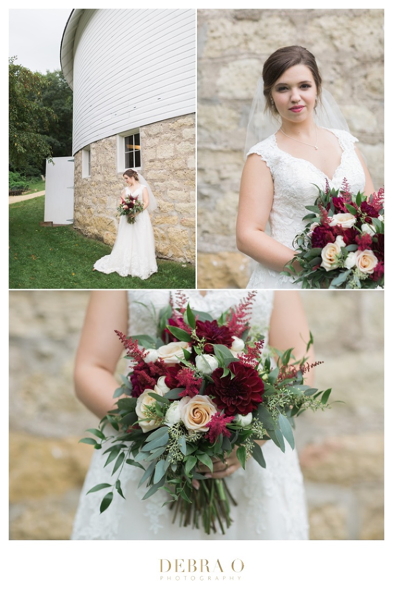 I honestly wanted to put Jenna and Alex in my pocket and keep them forever! They’re the sweetest couple with the sunniest disposition which came in handy on such a rainy day. The wedding was at The Round Barn in Red Wing Minnesota and let me tell you, it is CHARMING! The bridal suite is one of the most beautiful I’ve seen which really lends to creating beautiful getting ready photos. The grounds are filled with gorgeous flowers, surrounded by beautiful trees and stunning views of endless pastures. It was also wonderful to see the familiar faces of two past clients, Tressa & John who’s wedding I photographed a year prior. Tressa and John were Jenna and Alex’s Maid of Honor and Best Man and it certainly was a joy to see them having such a wonderful time together. Cheers to best friends and to happily ever after!