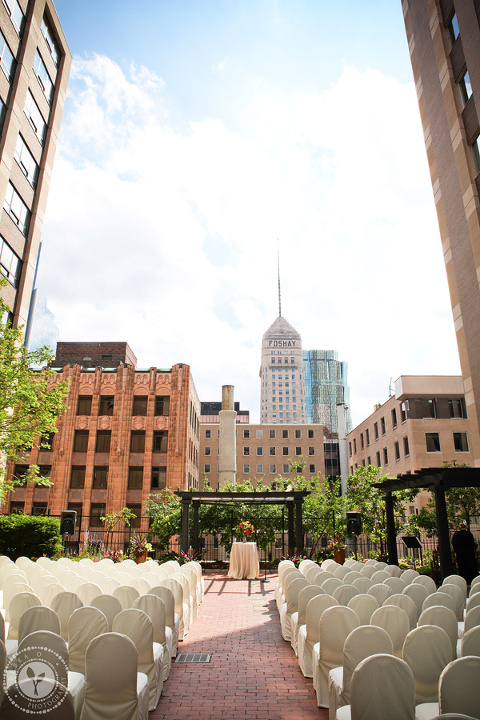 Jennifer and Kevin’s wedding was not only beautiful but it was very hot! The wedding took place on the 8th floor Sky Garden, located at the Crown Plaza in Minneapolis during one of the hottest days all summer. Luckily some clouds graced us with their presents just in time to cool down the sultry air just before the ceremony.