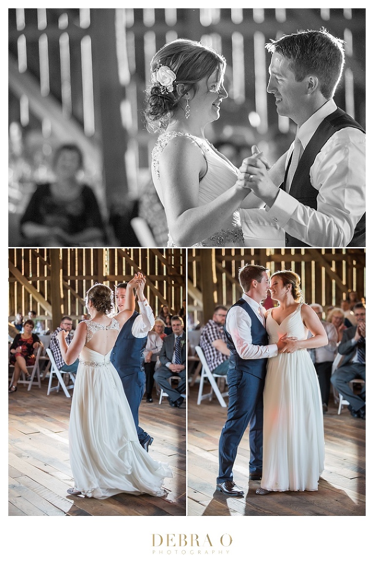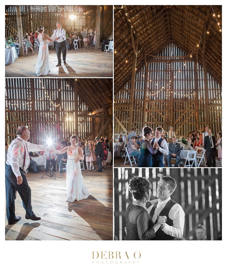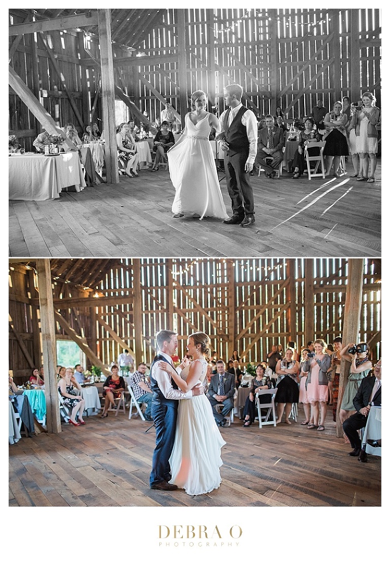 Wedding + Ceremony: Birch Hill Barn | Caterer: Brick’s | Florist: Hudson Flower Shop | Harpist: Laurie Lynn | Cake: Angel Food Bakery | DJ: Pro Sound
